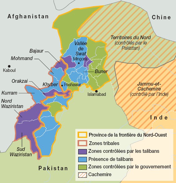 FATA (Federally Administrated Tribal Areas) : Anciennes zones tribales administrées par le Pakistan le long de la frontière afghane. Elles ont longtemps servi de refuge aux groupes insurgés.